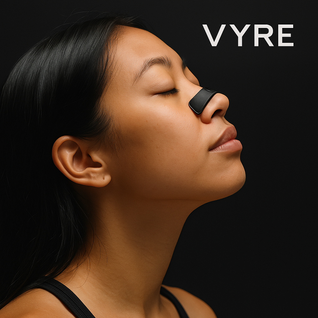 Vyre opens your airways wider, stays put when strips slip, wicks sweat, and won’t collapse when you breathe in.